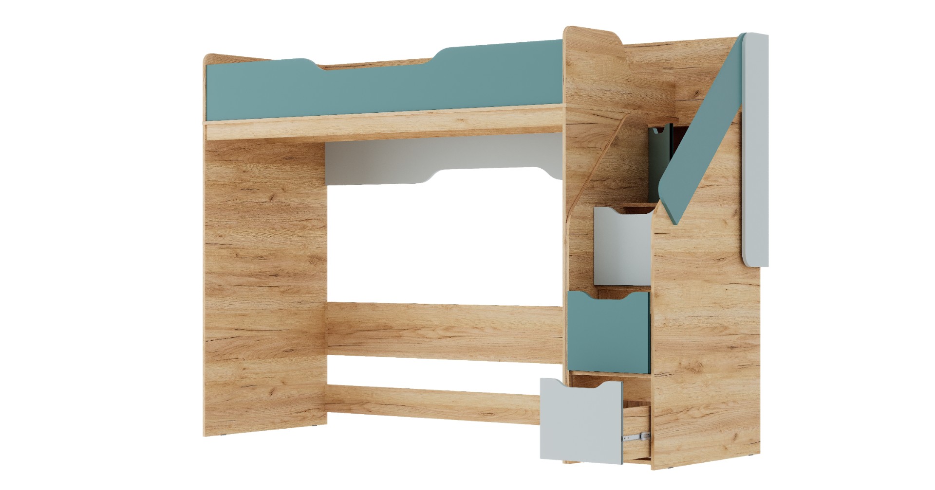 В конструкции используются шариковые направляющие. Кровать собирается на левую и правую сторону. Стандартно – лестница справа.