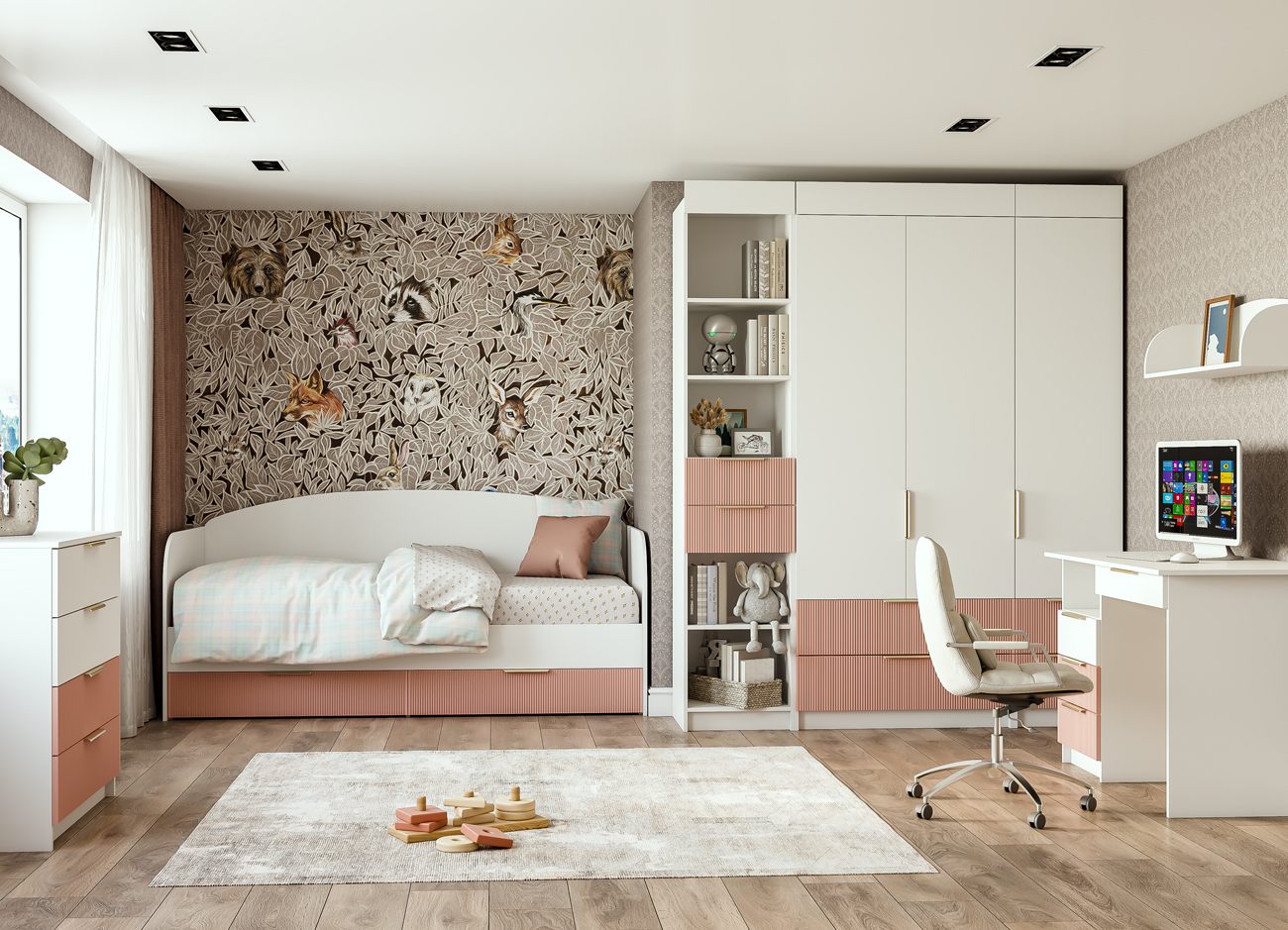 Стол письменный Лавис – стильное и функциональное решение для обустройства детской комнаты. Главная особенность модели – уникальные фасады с рельефной вертикальной фрезеровкой, которые выглядят необычайно эффектно, а также придают интерьеру индивидуальность и особую выразительность. Изделие выполнено из высококачественных материалов, что гарантирует его надежность и долговечность. Наиболее гармонично такой предмет мебели будет смотреться в сочетании с другими модулями из одноименной линейки.