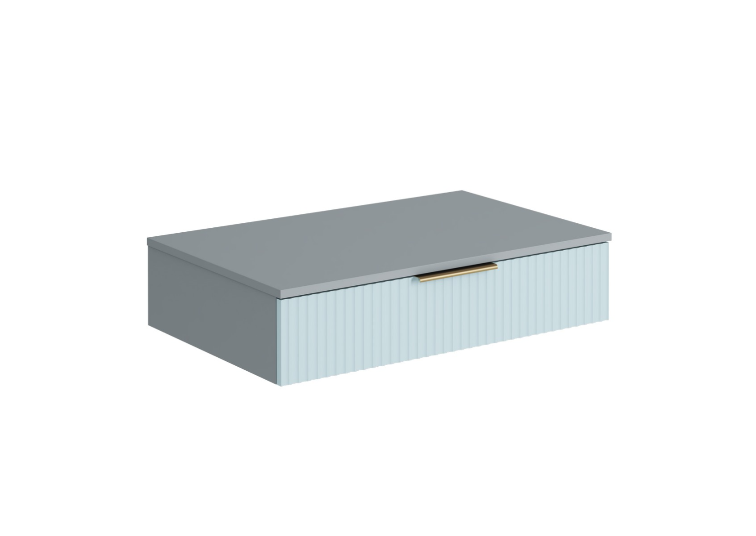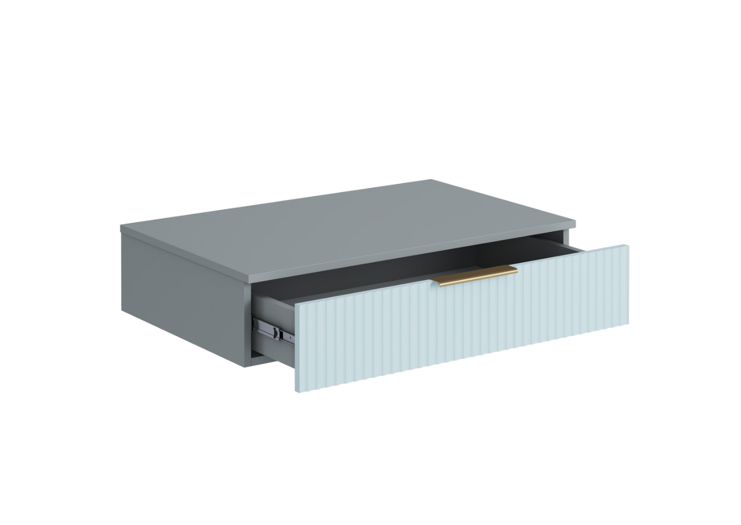 Фасад выдвижного ящика выполнен из МДФ с фрезеровкой, что придает ему эстетичный и декоративный вид. Фасад ящика накладной, открывание осуществляется при помощи специальной ручки. Это обеспечивает легкий доступ к содержимому ящика.