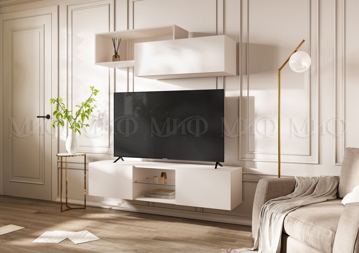 Модульная гостиная «Норд» - стильное и элегантное решение для Вашей гостиной комнаты. Комплект включает в себя двухъярусную полку с открытым и закрытым пространством, а также широкую подвесную тумбу под ТВ с открытой центральной полкой и закрытыми боковыми полками. На внутренних полках можно разместить книги, ТВ-принадлежности и иные необходимые вещи, открытые полки подойдут для предметов декора.