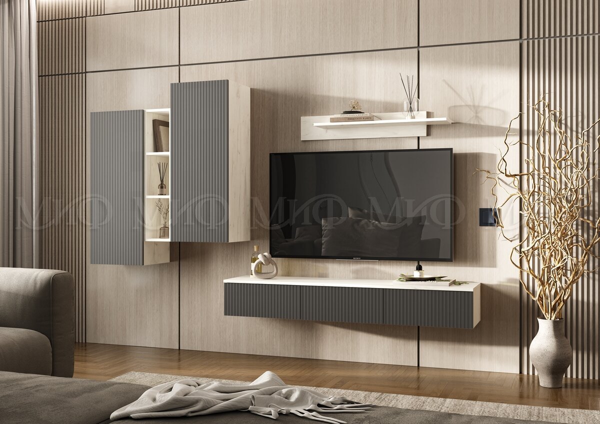 Модульная гостиная Оскар (Комплект 2) - Дуб Крафт белый / Графит (МИФ) — отличный выбор для создания уюта и комфорта в вашем доме! Современный дизайн и продуманная конструкция делают эту модель удобной и практичной. Всего за 578 BYN вы получаете качество, которое прослужит годы.