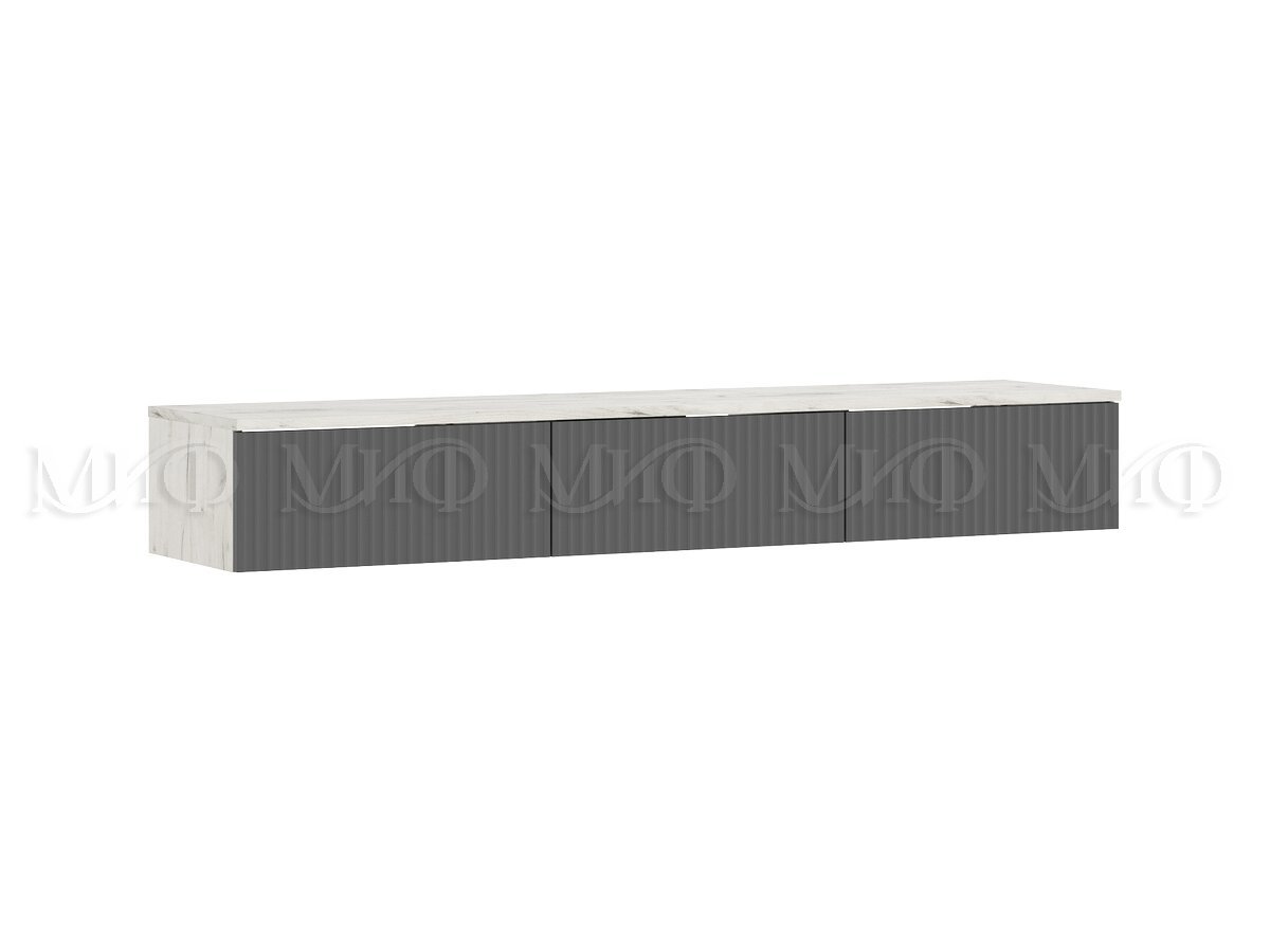 Модульная гостиная «Оскар» - элегантное и вместительное решение для Вашей гостиной комнаты. Комплект включает в себя подвесной шкаф с открытым и закрытым пространством, подвесную полку для предметов декора и широкую косметическую полку под ТВ с выдвижными ящиками. На открытых и закрытых полках можно разместить книги, журналы, ТВ-принадлежности и предметы декора. Фактурные фрезерованные фасады из МДФ выполнены без ручек, открываются простым нажатием на край створки.