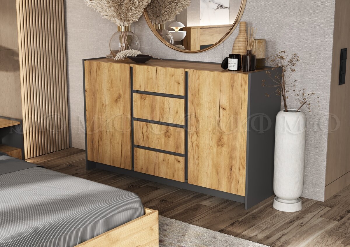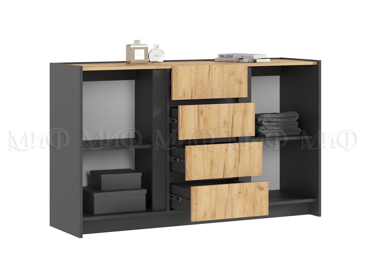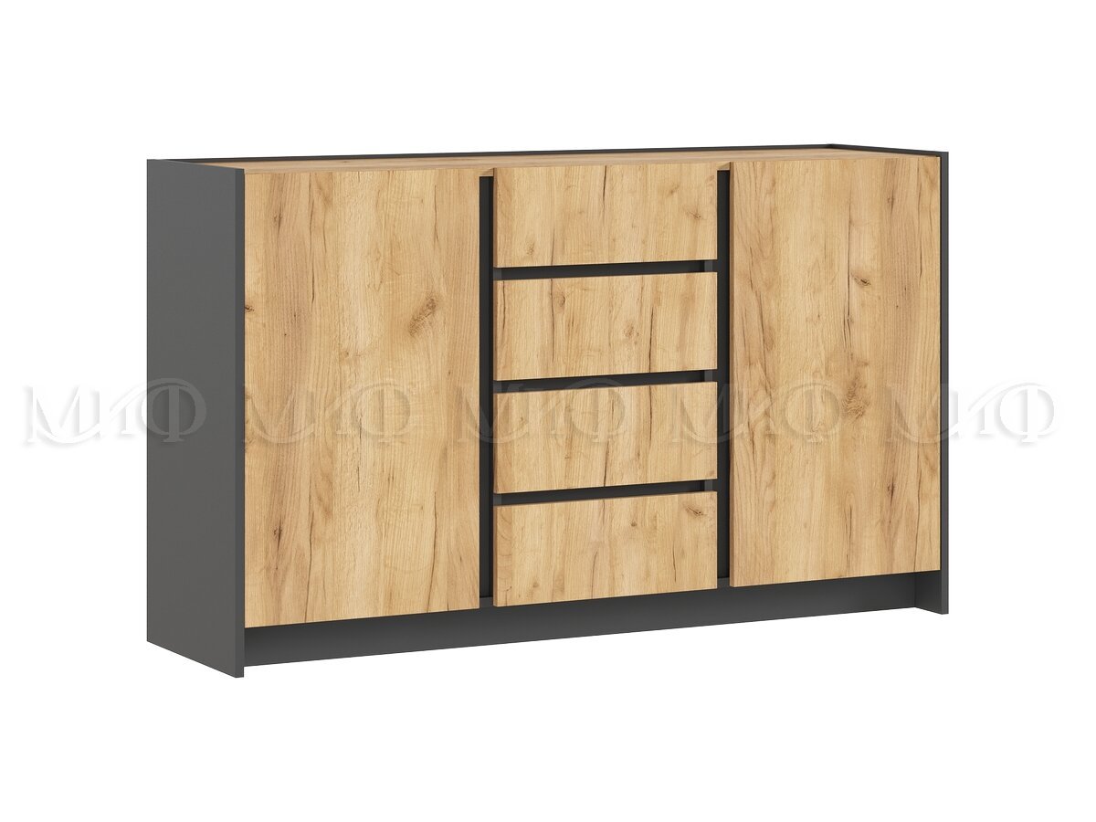 Комод Остин (2 двери, 4 ящика) - Графит / Дуб Крафт (МИФ) — отличный выбор для создания уюта и комфорта в вашем доме! Современный дизайн и продуманная конструкция делают эту модель удобной и практичной. Всего за 374 BYN вы получаете качество, которое прослужит годы.
