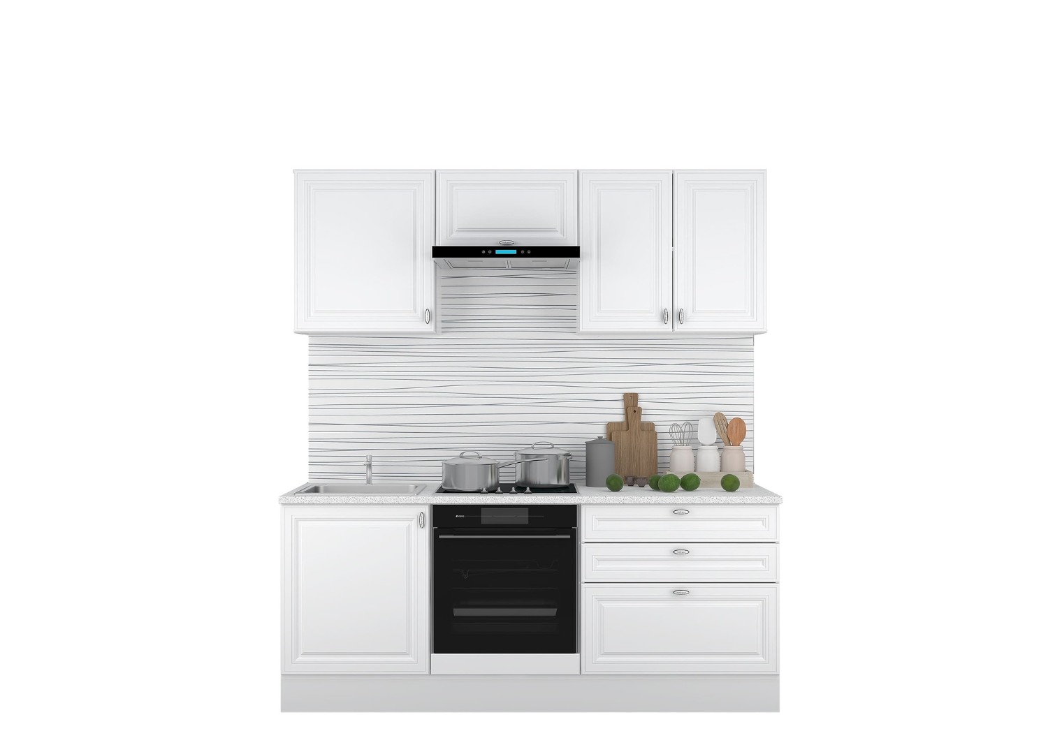 Гарнитур «Ева» - идеальное решение для интерьера кухни в классическом стиле. Традиционные для классики филенчатые фасады придают модели особую изысканность и элегантность, спокойный приглушенный оттенок гарнитура наполняет пространство гармонией, домашним теплом и необычайным уютом, завершают утонченный образ стильные ручки-кнопки с изящным декором.