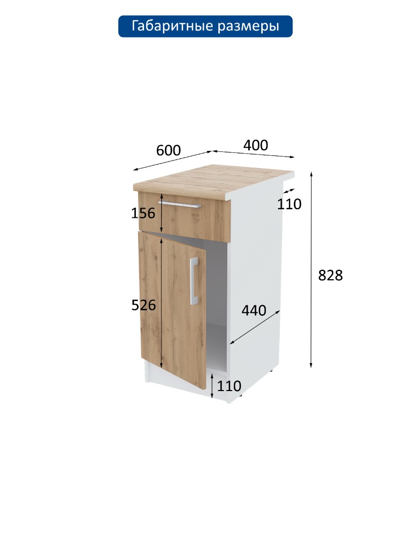 - Кухонный модуль напольный Настя 400 с ящиком ЛДСП (400х828х600 мм);