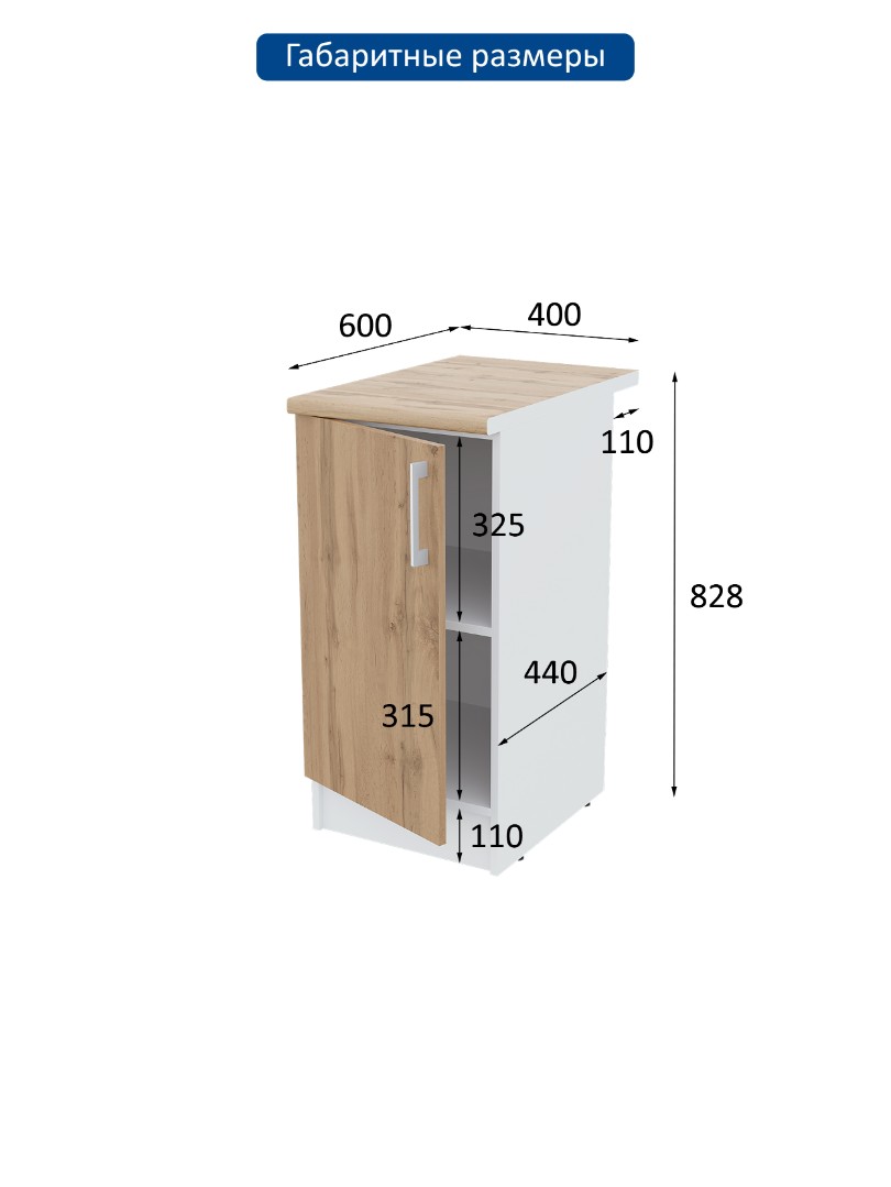 - Кухонный модуль напольный Настя 400 ЛДСП (400х828х600 мм);