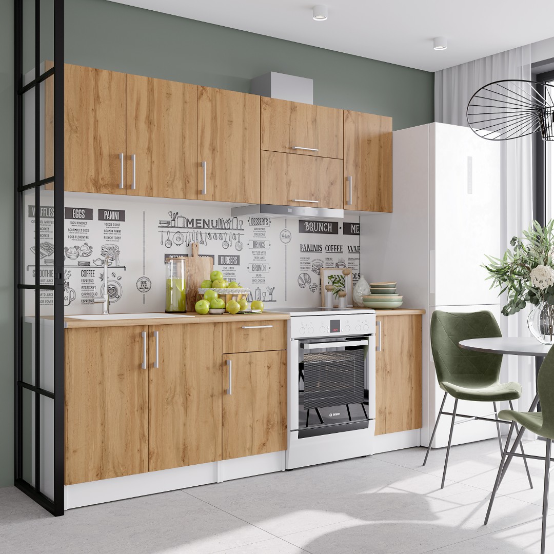 Модульная кухня «Настя» - это гармоничное сочетание лаконичного, не перегруженного лишними деталями дизайна, доступности и высокого уровня функциональности. Сдержанное, неброское цветовое исполнение гарнитура позволяет с легкостью вписать его в различные стили интерьера: минимализм, сканди, лофт, современная классика. Модель высоко оценят любители минималистичных и практичных решений для обустройства кухонного пространства.