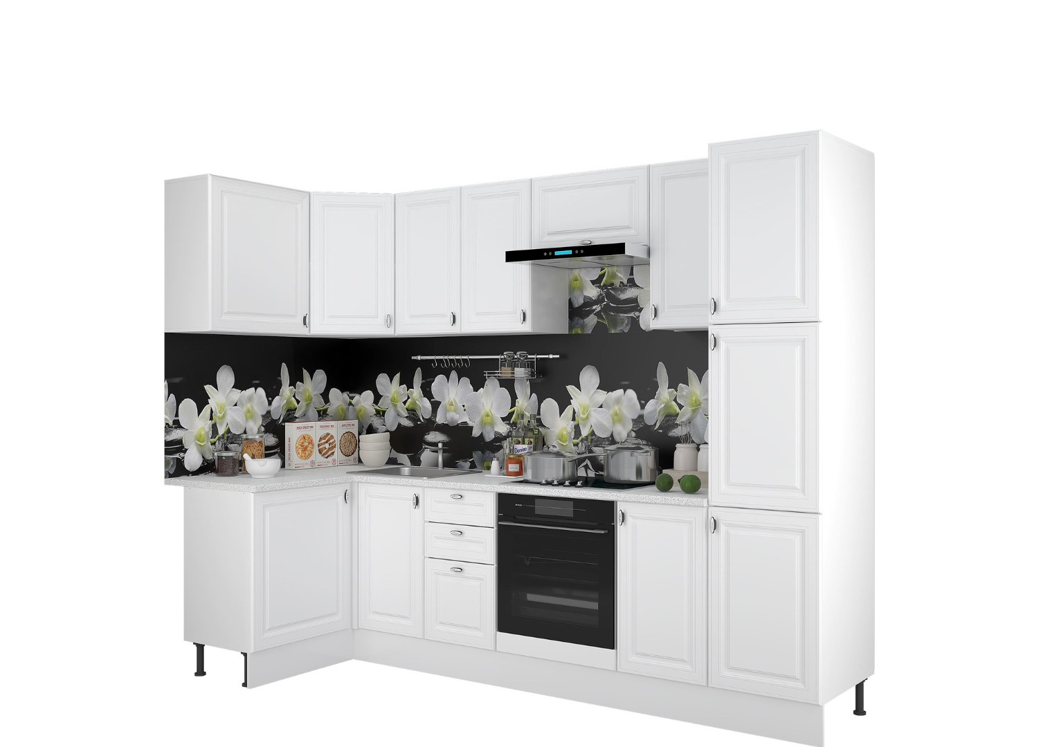 Гарнитур «Ева» - идеальное решение для интерьера кухни в классическом стиле. Традиционные для классики филенчатые фасады придают модели особую изысканность и элегантность, спокойный приглушенный оттенок гарнитура наполняет пространство гармонией, домашним теплом и необычайным уютом, завершают утонченный образ стильные ручки-кнопки с изящным декором.