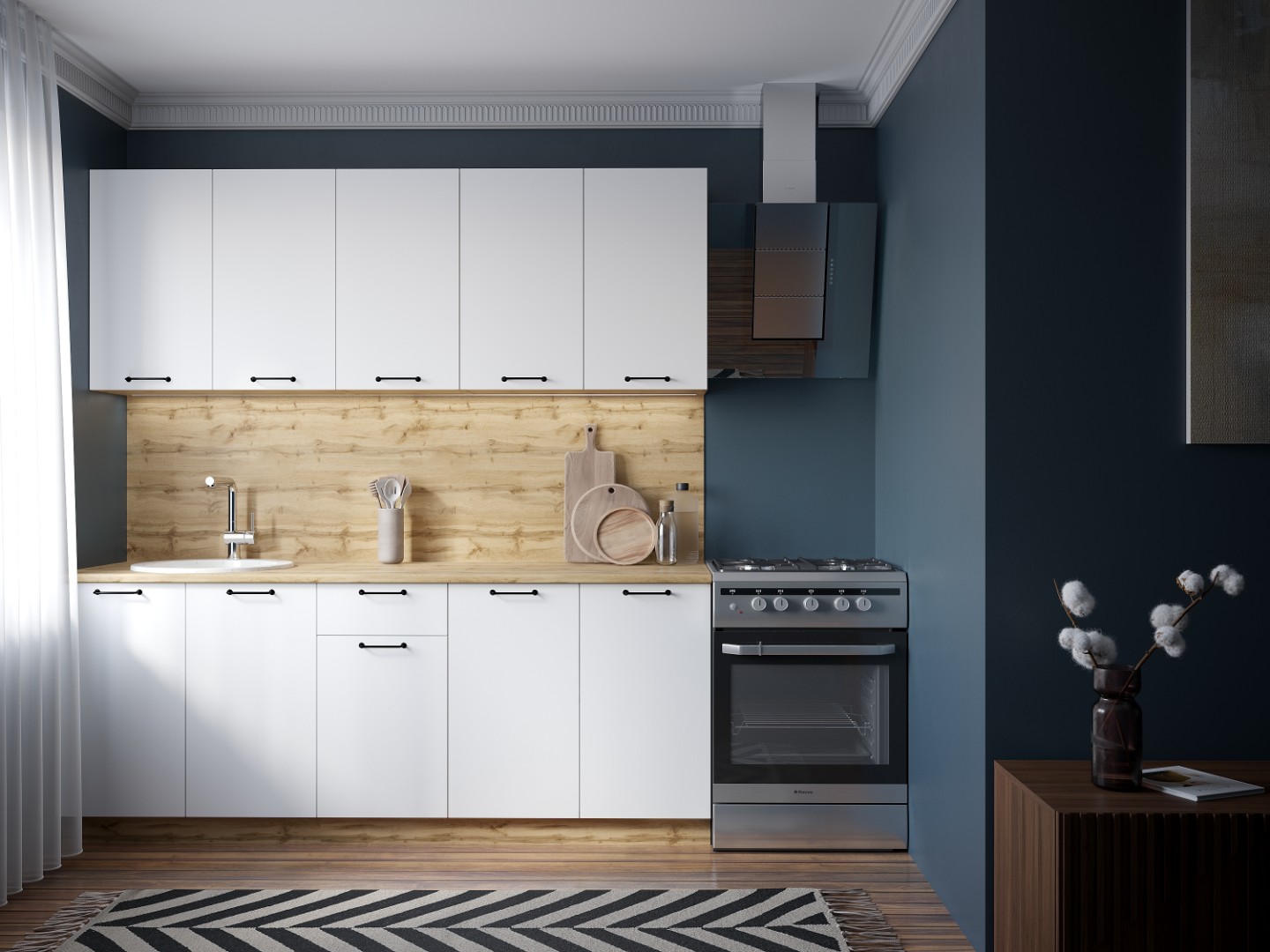 Лаконичный кухонный гарнитур «Валерия» с матовыми фасадами – отличный выбор для тех, кто предпочитает минималистичные, сдержанные, не перегруженные множеством деталей решения для обустройства интерьера кухни и стремится создать в помещении атмосферу спокойствия, гармонии и домашнего уюта.