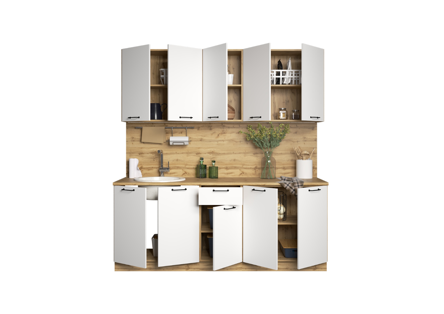 Материалы используемые для изготовления наших кухонь соответствует экологической норме Е1, безопасны для использования, в том числе и для детей. Основными плюсами ЛДСП являются высокая прочность, стойкость к температуре и долгий срок службы;