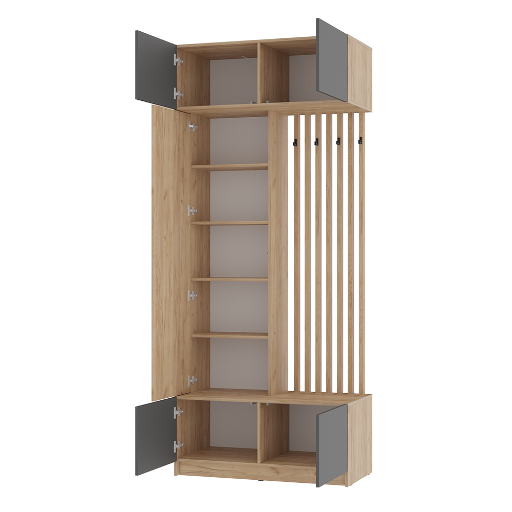 Модульная прихожая Багира – стильное и функциональное решение с лаконичным, элегантным, не перегруженным множеством деталей дизайном, которое гармонично впишется в любой современный интерьер. Сдержанное цветовое исполнение изделий, входящих в состав представленного набора мебели, позволяет с легкостью сочетать данный комплект с другими элементами обстановки.