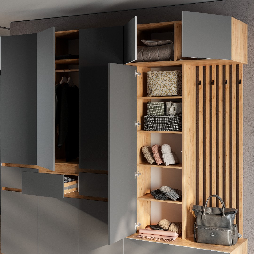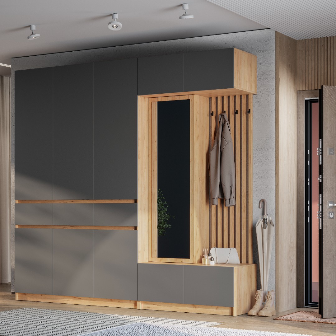 Модульная прихожая Багира – стильное и функциональное решение с лаконичным, элегантным, не перегруженным множеством деталей дизайном, которое гармонично впишется в любой современный интерьер. Сдержанное цветовое исполнение изделий, входящих в состав представленного набора мебели, позволяет с легкостью сочетать данный комплект с другими элементами обстановки.