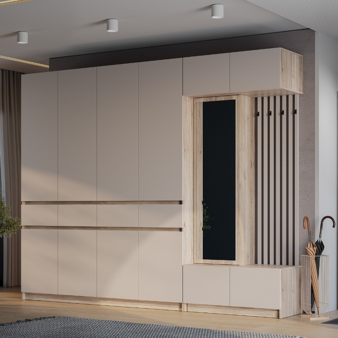 Модульная прихожая Багира – стильное и функциональное решение с лаконичным, элегантным, не перегруженным множеством деталей дизайном, которое гармонично впишется в любой современный интерьер. Сдержанное цветовое исполнение изделий, входящих в состав представленного набора мебели, позволяет с легкостью сочетать данный комплект с другими элементами обстановки.