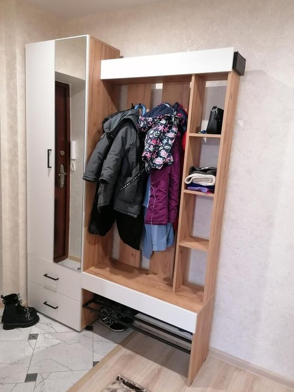 Благодаря шкафу с полкой, выдвижной штангой и 2-мя выдвижными ящиками для хранения, что позволит разместить в нем все необходимое. прихожая не только красивая, но и функциональная.