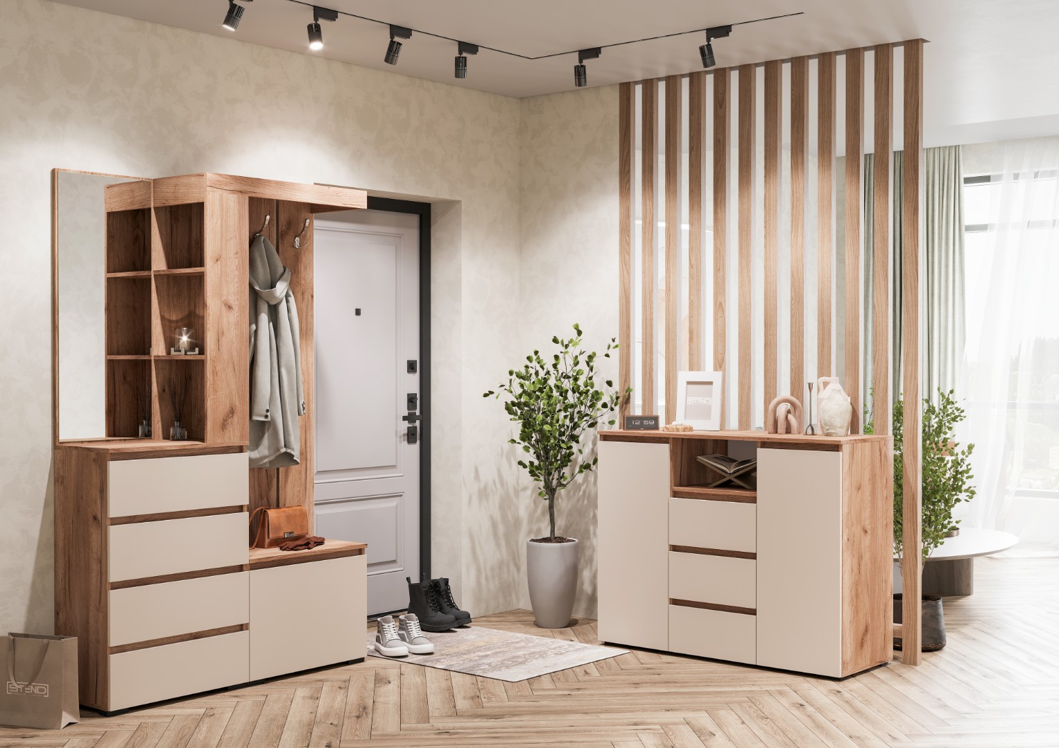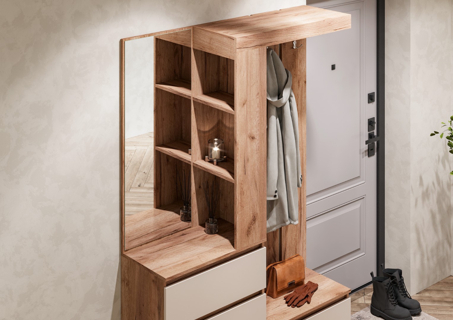 Комплект мебели для прихожей является составным, где каждую единицу мебели можно заказать по отдельности.