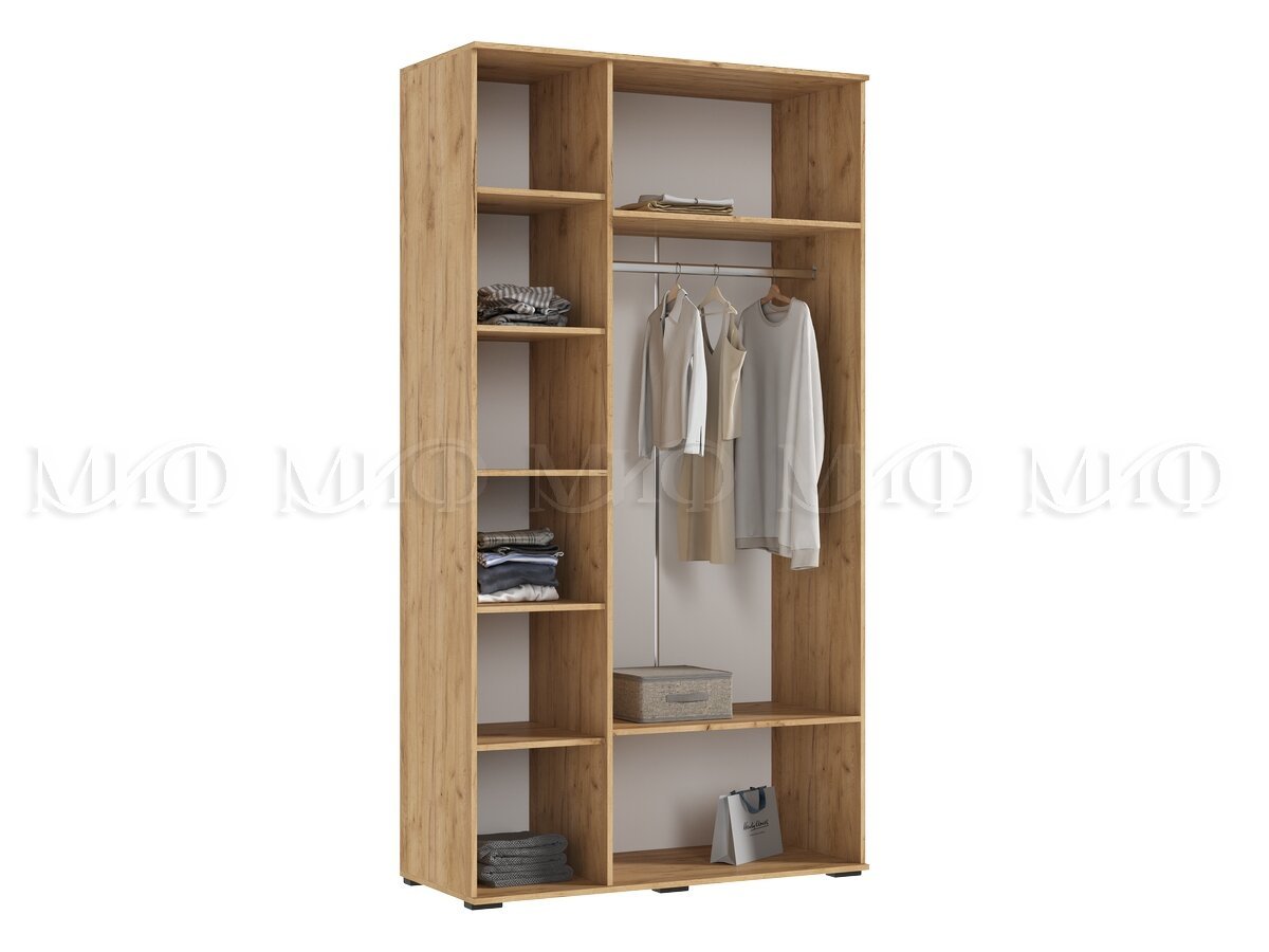 Предлагаем вам ознакомиться с трехстворчатым шкафом из коллекции "Норд". Внутри шкафа вы найдете широкую штангу для вешалок, а также полки сбоку, чтобы организовать свою одежду и аксессуары максимально удобно. Кроме того, модуль можно дополнить антресолью, которая разделена на две секции, что позволяет аккуратно их разделить и хранить различные предметы.