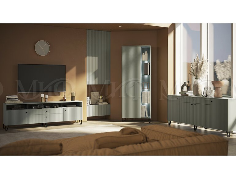 Шкаф «Оливия» - модуль подходит для обустройства комнаты в пастельной цветовой гамме. Данный оттенок освежит интерьер и создаст теплую уютную атмосферу. Дополнительную легкость придают модели достаточно высокие, тонкие опоры, поднимающие изделие над полом. Функциональность шкафа обеспечивается его наполнением – закрытое отделение для гардероба и открытая ниша с изящными полочками из стекла.