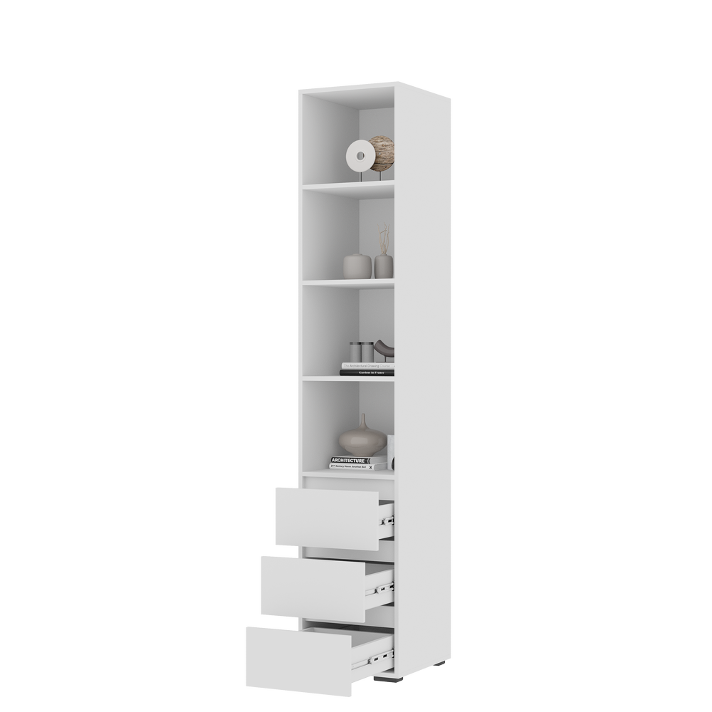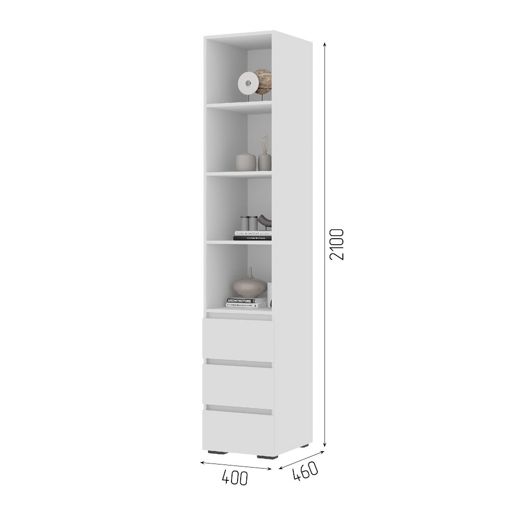 Пенал открытый из коллекции "Хелен" - это стильный и универсальный элемент мебели. Его цветовое исполнение позволяет гармонично вписать модуль в различные интерьеры. Пенал имеет три выдвижных ящика, идеальных для хранения мелочей, а также четыре открытые полки для размещения декоративных предметов или книг. Высокое качество материалов и строгое соблюдение производственных стандартов делают этот шкаф надежным и долговечным решением. В пенале установлены шариковые направляющие полного выдвижения.
