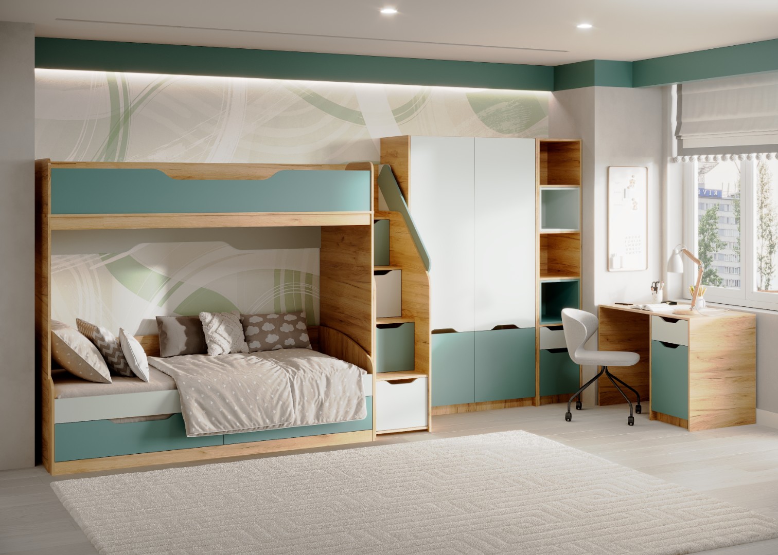 Линейка мебели RICH - современное решение для детской. Сочетание классических пастельных цветов с ярким "Дуб крафт золотой" позволит сделать комнату уютной.