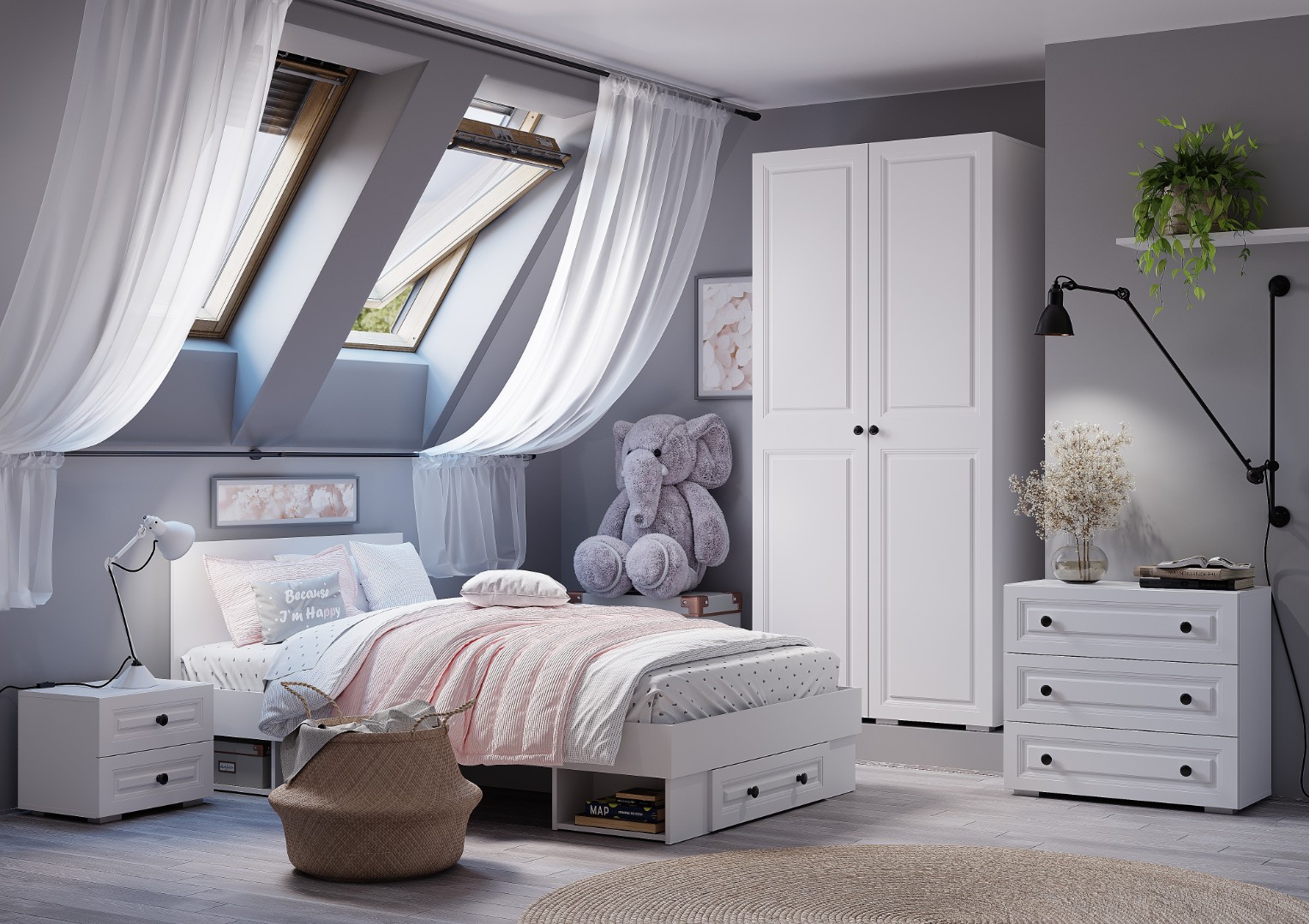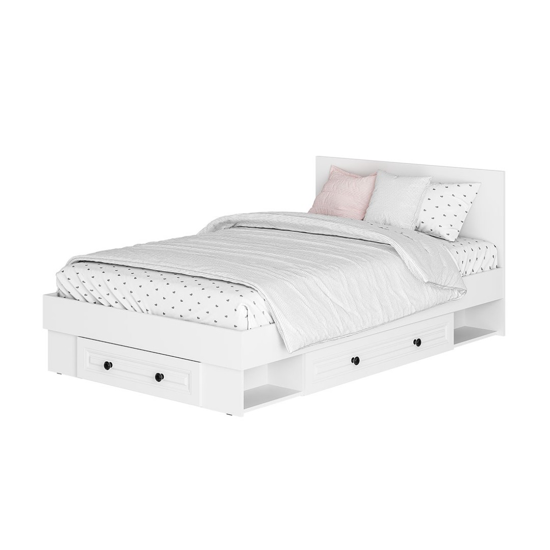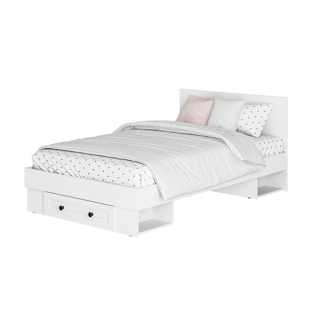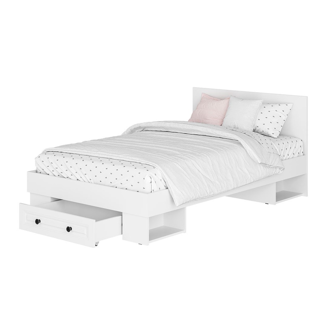 Кровать Софт – гармоничное сочетание эстетики и функциональности. Белый цвет смотрится необычайно эффектно и позволяет органично вписать такой предмет мебели в любой интерьер. Изделие оснащено вместительным выкатным ящиком на колесиках (в изножье), также есть возможность дополнительно приобрести боковые выкатные ящики. Модель можно использовать как самостоятельно, так и совместно с другими модулями из одноименной коллекции.